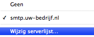 Klik bij Server uitgaande post (SMTP) op de dropdown list en klik op Wijzig serverlijst.