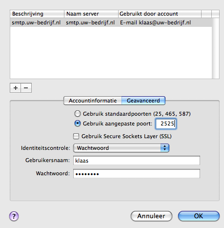 STAP 9: (Klik smtp.uw-bedrijf.nl aan en stel deze op poort 2525 in.)