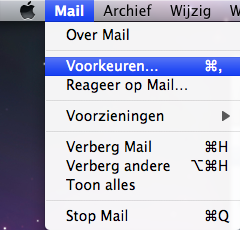 - Klik in de menubalk op Mail en selecteer Voorkeuren.